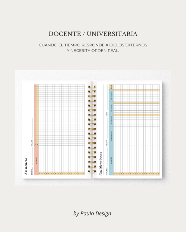 La Agenda Docente Paula Design está pensada como una herramienta integral de organización para acompañar el trabajo educativo de manera clara, práctica y sostenida en el tiempo.
