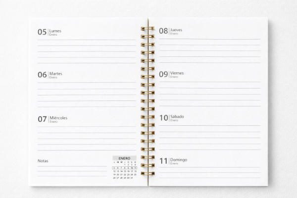Una agenda funcional, flexible y bien resuelta, pensada para organizar tu tiempo con criterio y sostener el orden en el día a día.